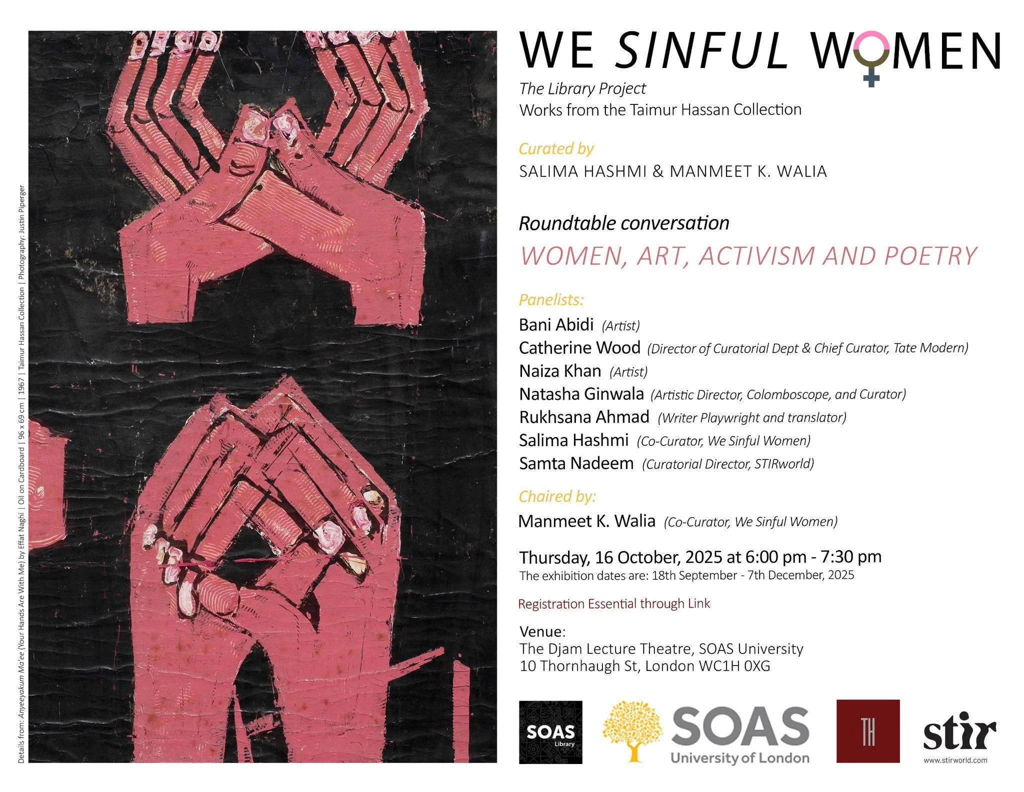 Curated by Salima Hashmi and Manmeet K. Walia. The exhibition brings together the works of women artists from South Asia and Middle East from the Taimur Hassan Collection. Inspired by Kishwar Naheed’s iconic poem Hum Gunehgaar Auratien (We Sinful Women), the show spans generations, disciplines, and geographies to create a rare constellation of practices in dialogue. Their works speak of resilience, resistance, and shared histories, offering a rare constellation of voices across time.